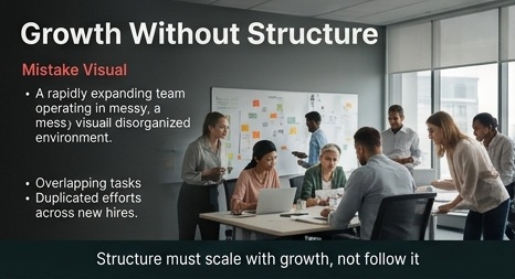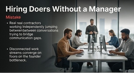 Four people doing work. Zero people managing how the work connects. Every new hire increases the founder's coordination workload. What I do instead: I make sure a management layer is in place before adding execution capacity.